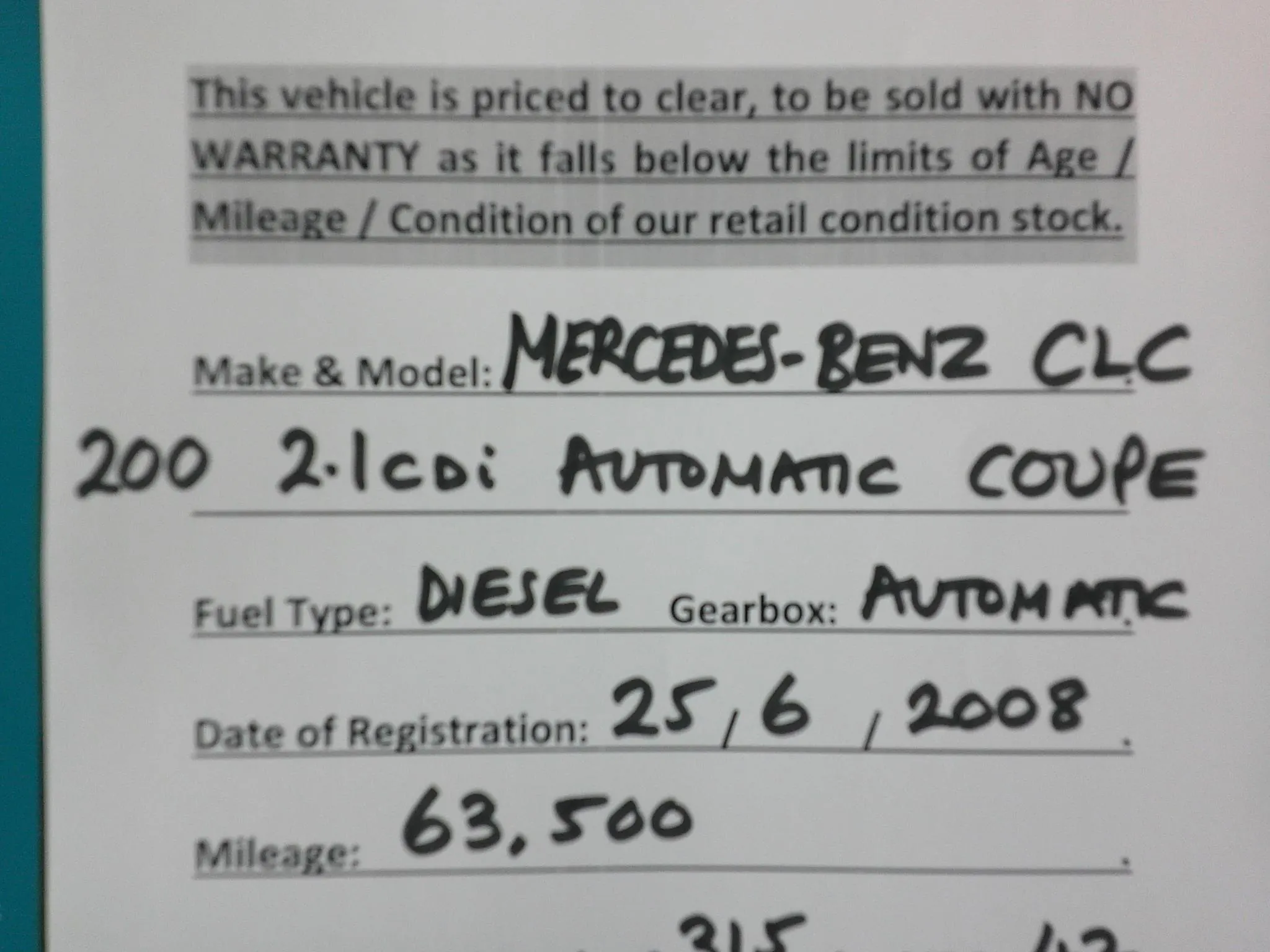 CLEARANCE VEHICLE TO BE SOLD AS SEEN WITH NO WARRANTY AS IT FALLS BELOW OUR AGE or MILEAGE or CONDITION LIMITS. Not perfect but its an old car. Low mileage at only 63500 miles. Automatic. Bargain clearance car. MOT until 16th December 2026, Not perfect but its a great bargain. Contact Jason Crew at Crews Car Sales, Five Square Motors, Salisbury Road, Shaftesbury, Dorset. SP7 8BU, PLEASE ARRANGE AN APPOINTMENT FOR VIEWINGS & ENSURE YOU BRING YOUR DRIVING LICENCE.
